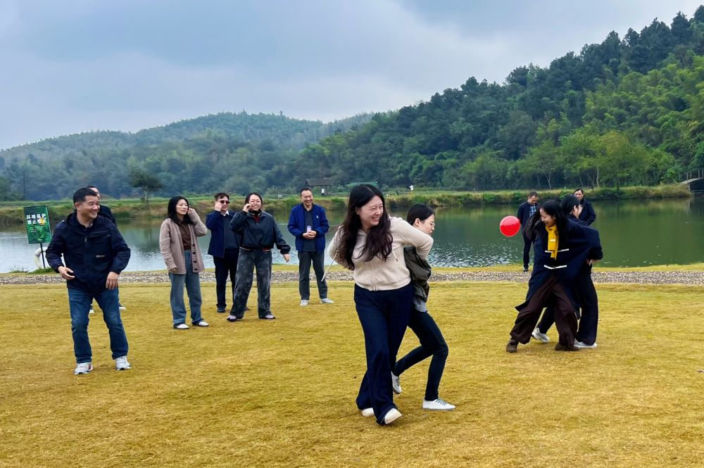 上午,风清气朗,桂香沁人。大家满怀热忱前往秣陵街道元山社区乡伴苏家理想村,开启一场充满秋日意趣的团建活动。活动伊始,大家漫步在错落有致的乡村步道上,观赏秋日田园盛景、湖光山色。此次团建特别设置了“三子对弈”、“同心运球”等互动游戏,以轻松有趣的形式考验团队配合与协作默契,在欢乐氛围中拉近心与心的距离,提高团队凝聚力。