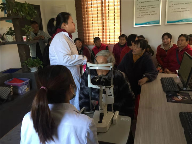 现场的医护人员耐心地为每位居民开出检查告知单,写明眼部筛查结果,发现问题及时记录,并告知查出有问题的居民及时到医院作进一步的检查和治疗。