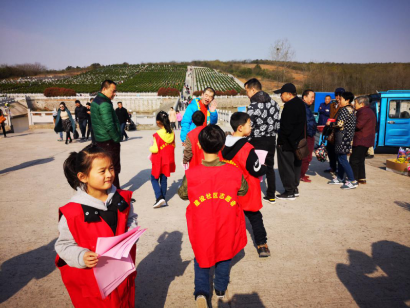 4月4日,我社区的平安志愿者还有文明小义工们来到了我辖区内的汤山向阳公墓,为即将到来的清明节宣传文明祭扫。